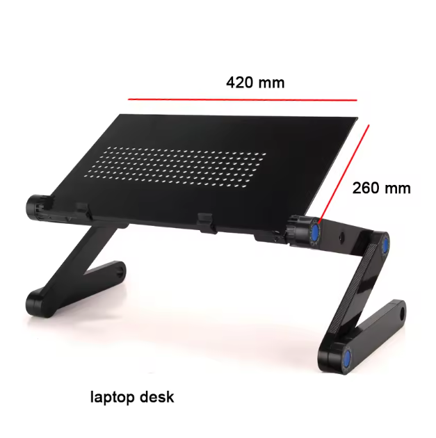 Its foldable design ensures easy portability and storage, while adjustable angles provide ergonomic comfort tailored to your needs. Ideal for professionals seeking to enhance laptop performance and prevent overheating, this table combines functionality with convenience for a superior working experience.